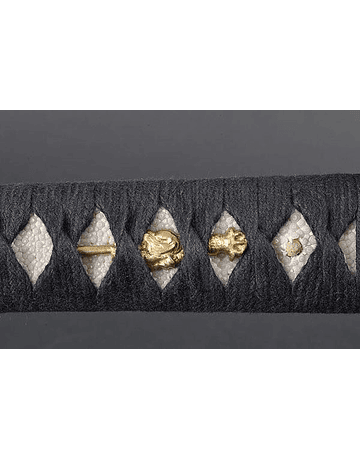 Tsuka (mango): Piel de raya genuina envuelta con algodón japonés Ito y adornada con Menuki(ornamento);