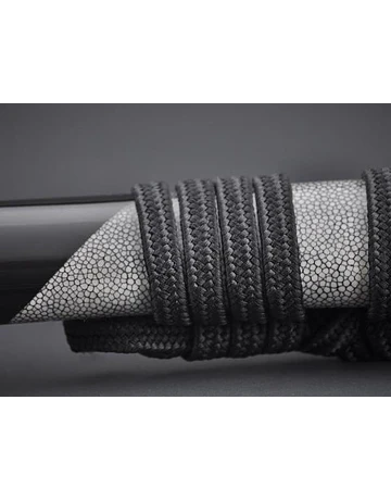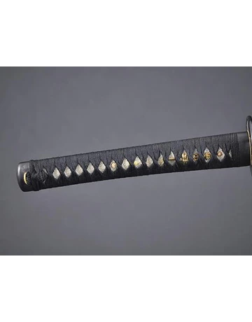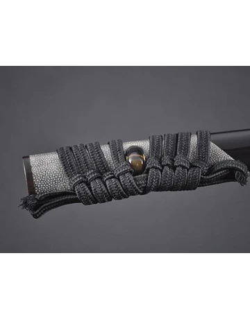 Tsuka(Mango): Piel de raya genuina envuelta con algodón japonés negro Ito con Menuki (ornamento);